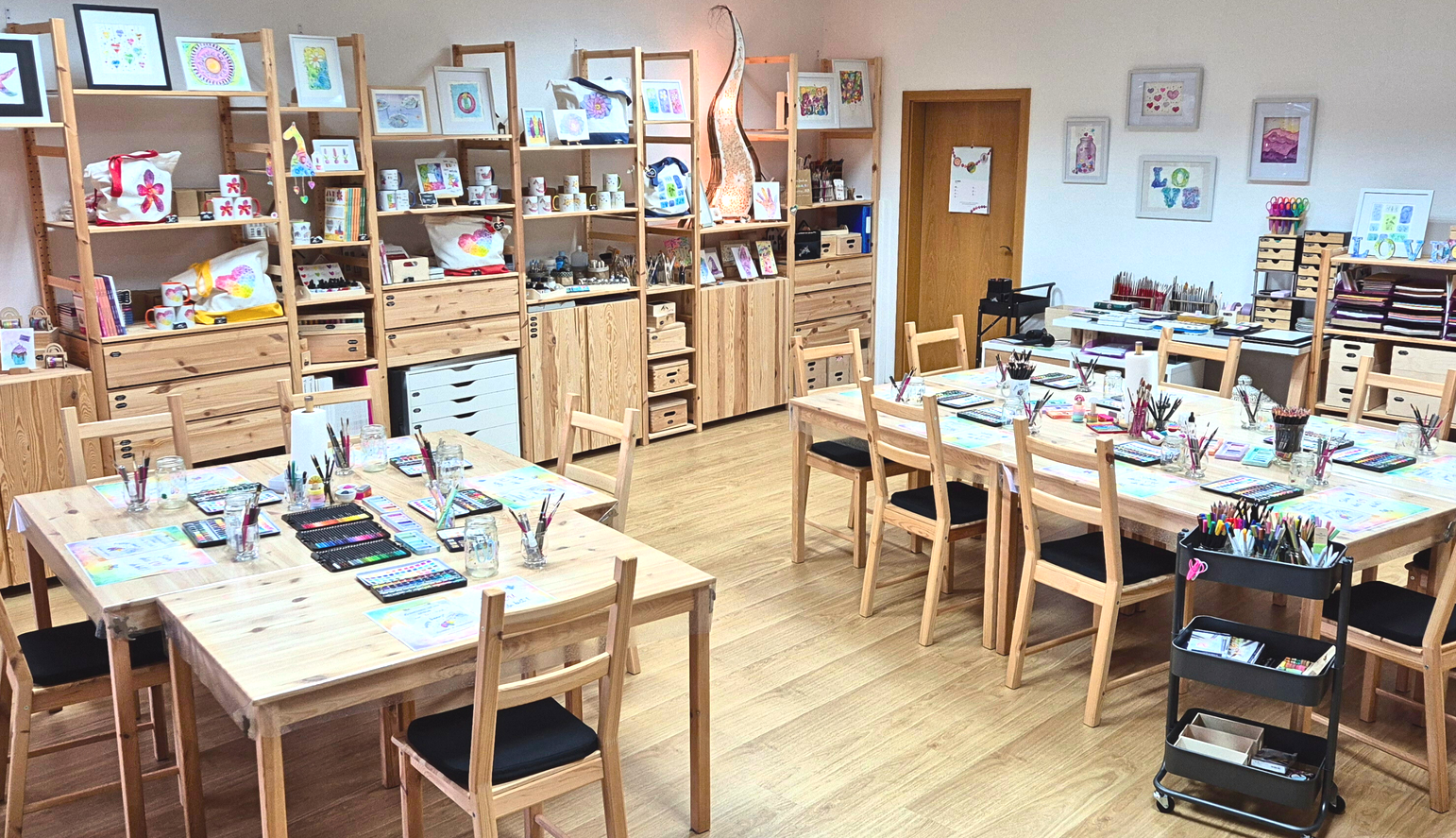 Du brauchst Dir kein Material kaufen und Dir auch zuhause keinen Platz fürs Kreativsein schaffen: Hier kannst Du einfach vorbeikommen und loslegen…